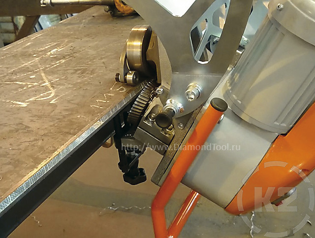 Ультралёгкий кромкорез с автоматической подачей отличается высокой производительностью и исключительно низким уровнем шума, может работать как по верхней, так и по нижней кромке листа. Толщина обрабатываемой детали может колебаться в пределах от 3 до 35 мм. Минимальный размер заготовки - 60 на 60 мм. Используется для обработки листов из чугуна, стали (плотностью до 60 кг/мм2), нержавеющей стали, латуни, меди и алюминия.