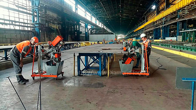 Мощный автоматический кромкорез для снятия фаски с двух сторон на заготовках из стали, нержавеющей стали или алюминия. Максимальная скорость автоподачи 1,2 м/мин. 3D-манипулятор, входящий в комплект поставки, позволяет легко поворачивать кромкорез на 180 градусов для нарезания двухсторонних конических фасок, что значительно экономит время. Машина как бы "плавает" в манипуляторе, что компенсирует неровности пола и дефекты заготовки. Уникальная система крепления Quick System позволяет закрепить установку и снова вынуть из манипулятора за несколько секунд без применения дополнительного инструмента. Удобный подъемный механизм позволяет поднять кромкорез на необходимую высоту. Массивные колеса, установленные на манипуляторе, позволяют без труда перемещать конструкцию. Кромкорезом можно управлять при помощи пульта дистанционного управления, входящего в комплект поставки.