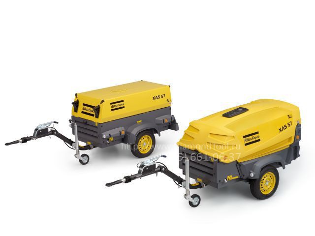 XAS57Dd2Компрессор Atlas Copco XAS 57 Dd на дорожном шасси без выдачи ПТС для перемещения компрессора по объекту по запросу