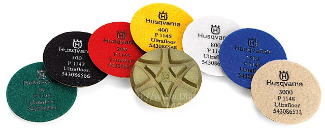 Компания Husqvarna предлагает своим пользователям технологический процесс для отделки бетонных полов, состоящий из комплекта оборудования и расходных материалов.