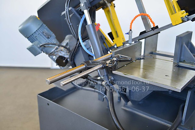 - Бесступенчатая регулировка скорости ленточнопильного полотна в стандартной комплектации. Позволяет точно настроить режимы резки под конкретную заготовку, тем самым увеличив срок службы ленточнопильного полотна.
