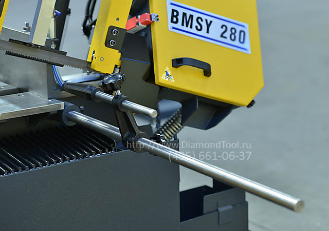 Ручной ленточнопильный станок BMSY 350M турецкого производителя Beka-Mak с длиной ленточного полотна 3660 мм, высотой рабочей поверхности 640 мм и скоростью резания 20-100 м/мин используются для производительной резки профильного и сплошного металлопроката. Пильная рама опускается под собственным весом, скорость опускания регулируется с выносного пульта управления. Возврат пильной рамы в исходное положение и зажим заготовки происходит с помощью гидравлики, после команды оператора. Подходят для резки сплошного и профильного металлопроката преимущественно под углом 90° диаметром до 350 мм.