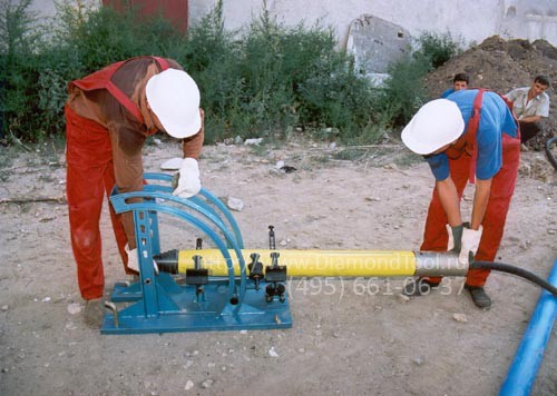 - Устройство для подтягивания труб ИП4603А.10.000 – применяется с машиной ИП4603АМ при затягивании полиэтиленовой трубы. Устанавливается на конце полиэтиленовой трубы и поджимает трубу к задней гайке машины, таким образом происходит затягивание трубы при одновременной проходке скважины.