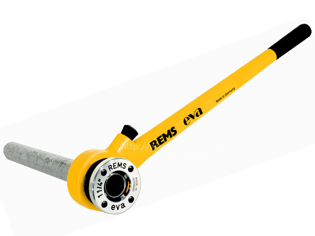 REMS Ева – клупп для монтажника. Особенно легкий надрез и нарезание резьбы. Храповый рычаг из стали, покрытый пластиком. Всего один тип быстросменных резьбонарезных головок.