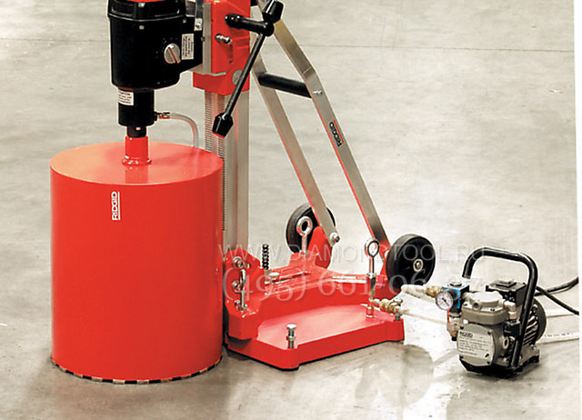 Легкая и удобная установка для сверление кирпича и железобетона. Есть обычная и удлиненная опорная стойка 1650 мм. - Установка алмазного бурения Ridgid RB-214/3