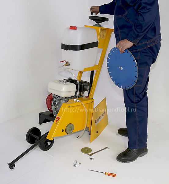 Нарезчик швов CS-146, отлично зарекомендовал себя при выполнении работ по мелкому дорожному ремонту. Легкий и компактный швонарезчик, имеет глубина резки 110мм, макс. диаметр режущего алмазного диска 350мм. Вес нарезчик швов 80 кг, габаритные размеры 880 х 520 х 1160 мм.