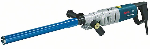 Мощная и надежная ручная однофазная двухскоростная дрель алмазного сверления Bosch GDB 1600 WE Professional для сверления отверстий в бетоне, кирпиче или камне при помощи коронок алмазного сверления. Данный двигатель может использоваться как навесу руками, так и совместно со стойкой, рекомендуем стойку S 500 A.